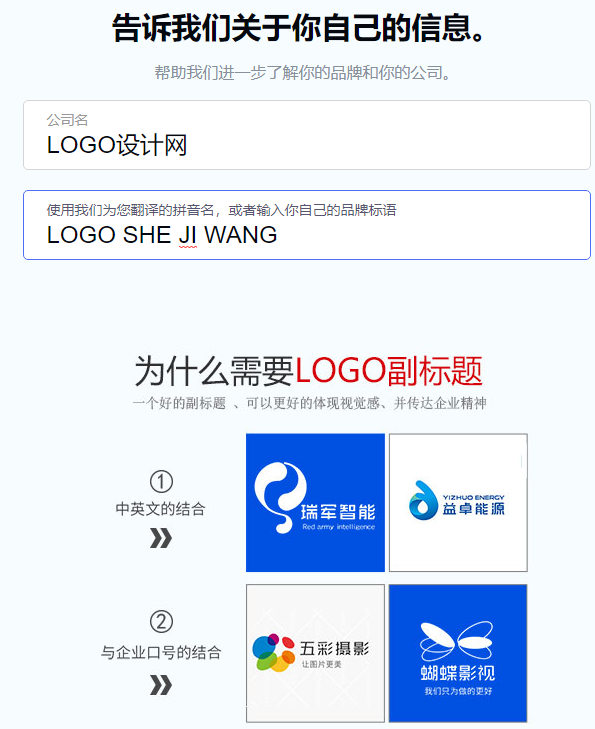 根据系统提示选择适合企业的字体、标志和颜色。